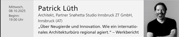 Neugierde, Performanz und Verantwortung – Werkberichte starker Architekten, die für mutige Konzepte, regionale Verankerung und internationale Perspektiven stehen. Die BDA-Vortragsreihe „Architektur + Baukultur 2025“ geht in die Herbstsaison: Auftakt ist am Dienstag, 8. Oktober 2025 um 19.00 Uhr mit Patrick Lüth (Snøhetta, Innsbruck) im Museum für historische Maybach Fahrzeuge in Neumarkt i.d.OPf.