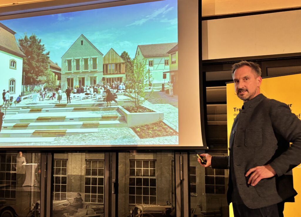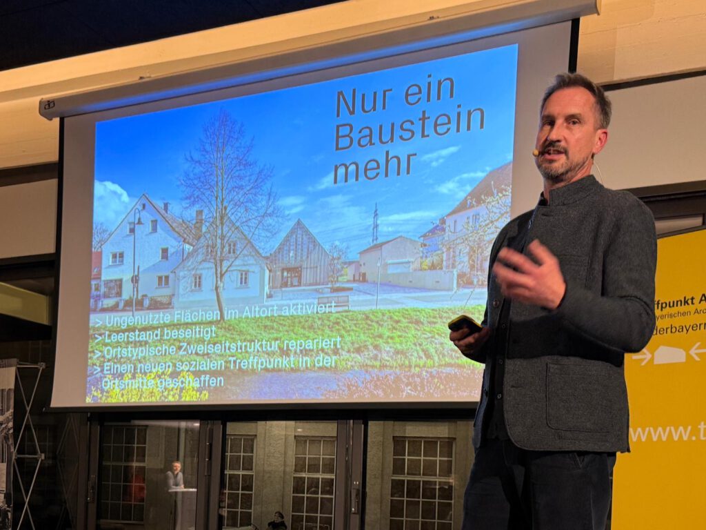 Zum Finale begeisterte Stefan Schlicht von Schlicht Lamprecht Kern Architekten aus Schweinfurt mit einem inspirierenden Vortrag, der Lust und Mut macht, auch mal groß angelegte Visionen umzusetzen. Zwei kurzweilige Stunden lang zeigte der Architekt seine preisgekrönten Projekte, die mit Best-Practice-Charakter für starke Architektur und Baukultur stehen – darunter die Neue Ortsmitte Niederwerrn oder die Bibliothek Gundelsheim. Eindrucksvoll demonstrierte Schlicht, wie aus Orten ohne Identität lebendige Mittelpunkte entstehen können, wenn regionale Handwerkskunst, neue Ideen und gemeinsames Handeln zusammenfinden.