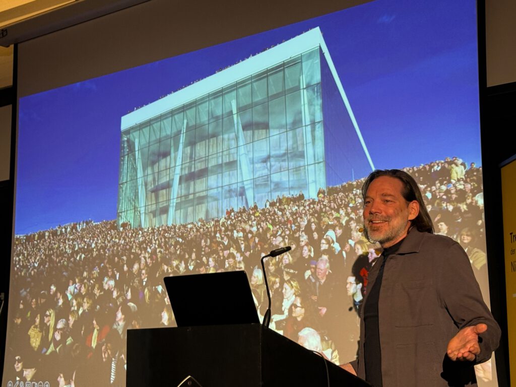 Den Auftakt gestaltete Patrick Lüth von Snøhetta Innsbruck – und sorgte gleich für eine echte Sternstunde. Mit eindrucksvollen Bildern und spürbarer Leidenschaft zeigte Lüth, wie Architektur Verantwortung übernehmen kann: sozial, ökologisch und kulturell. Für das international agierende Büro mit norwegischen Wurzeln steht der Mensch stets im Mittelpunkt. Ob das öffentlich zugängliche Operndach in Oslo, das rund um die Uhr als Stadtplatz für alle dient, oder das transparente Kinderspielhaus von Swarovski in Tirol – Snøhetta gelingt es, Orte zu schaffen, die Gemeinschaft stiften und Identität stärken.